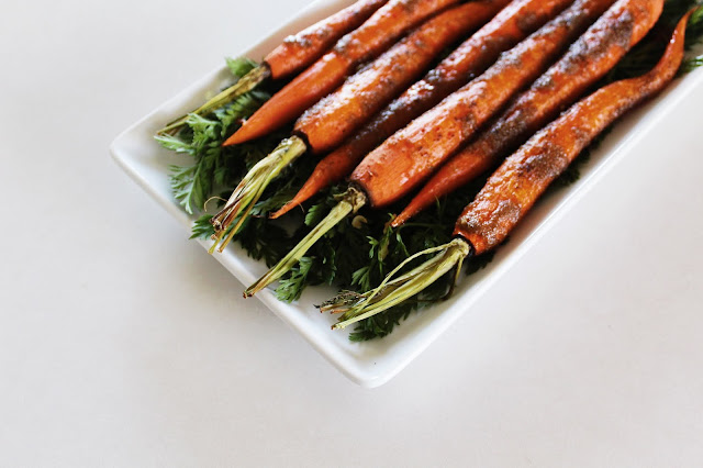 After trimming down the stems I didn't want to waste the leaves so I decided to serve my carrots on top of them.